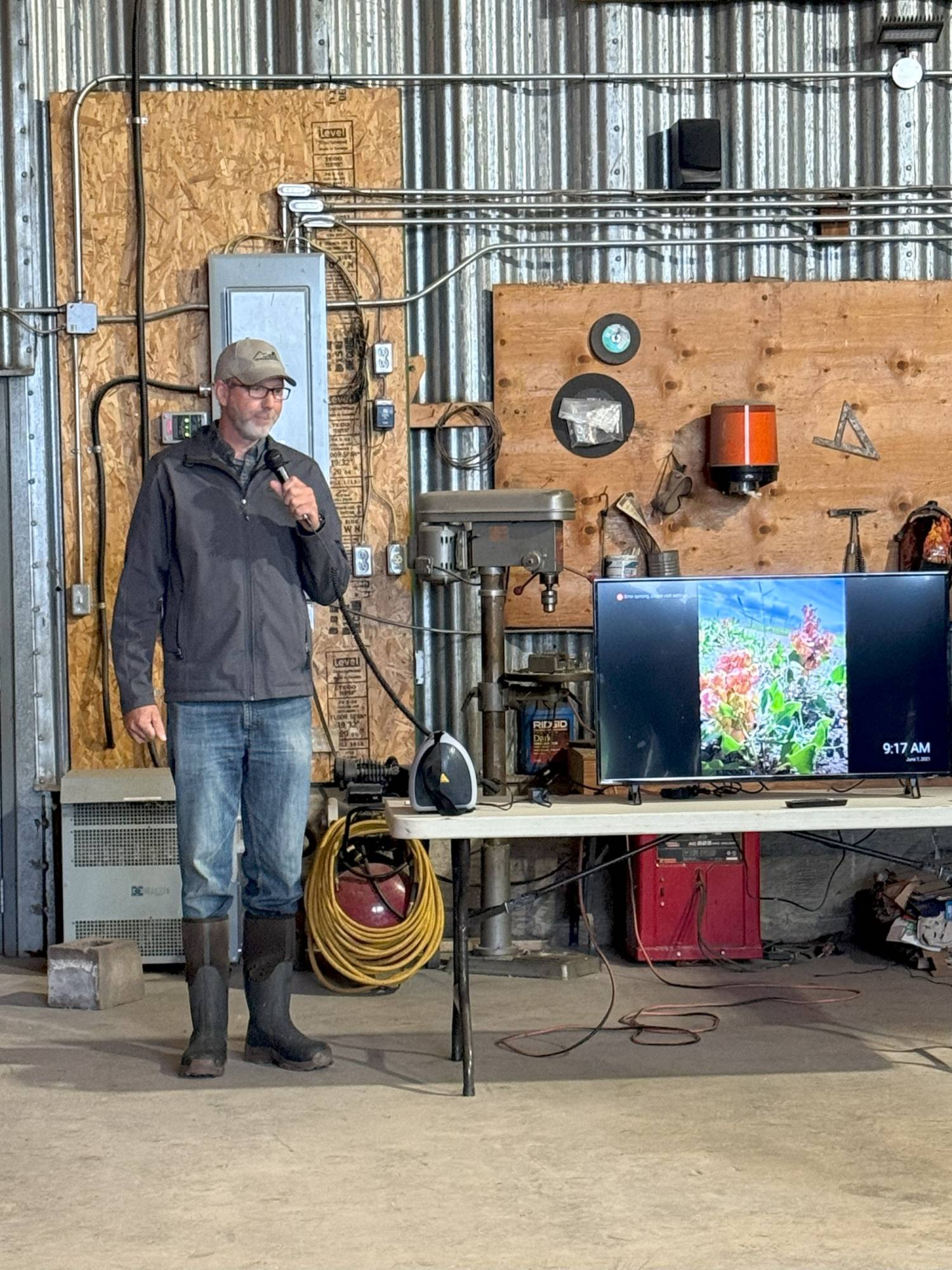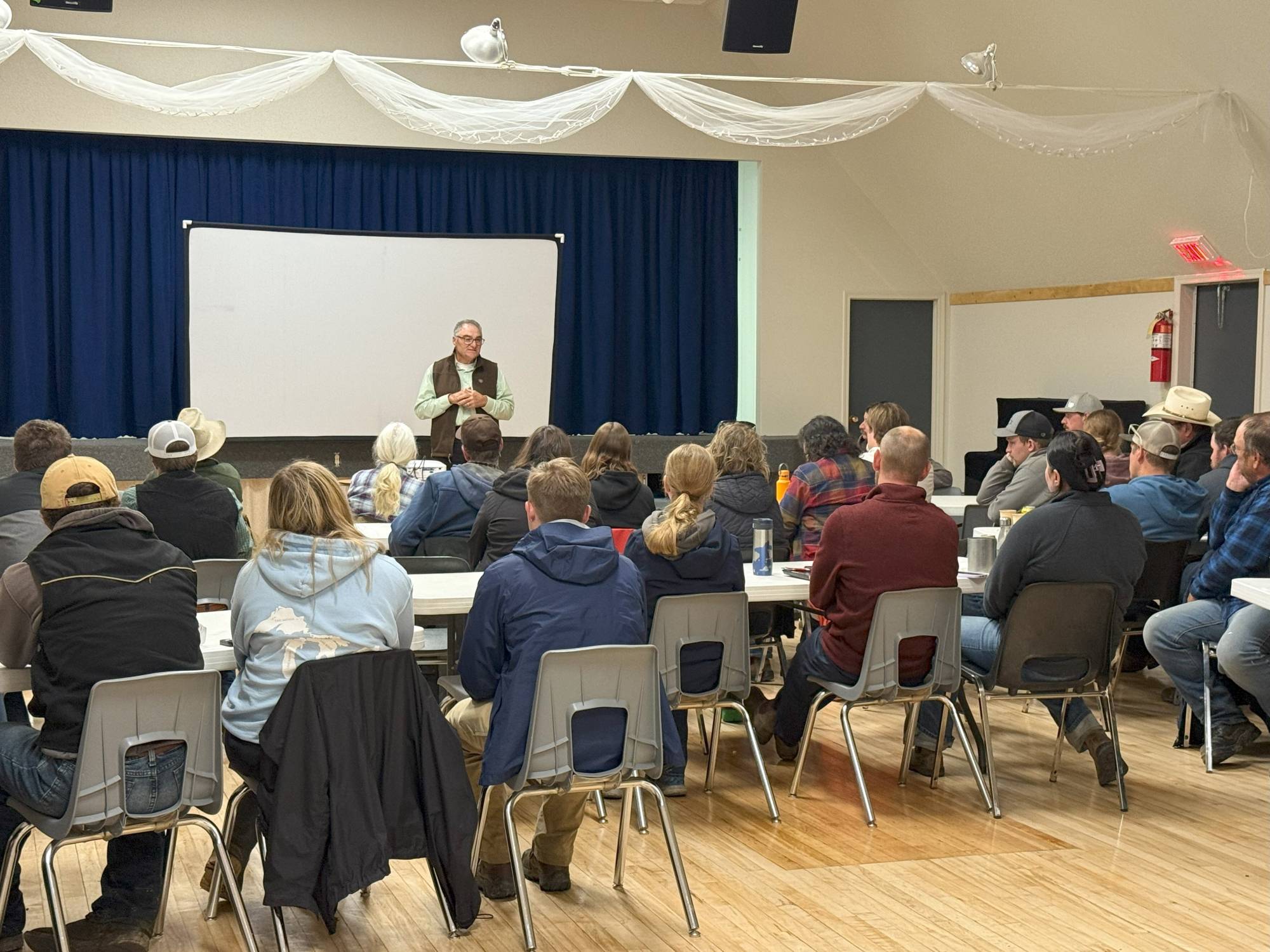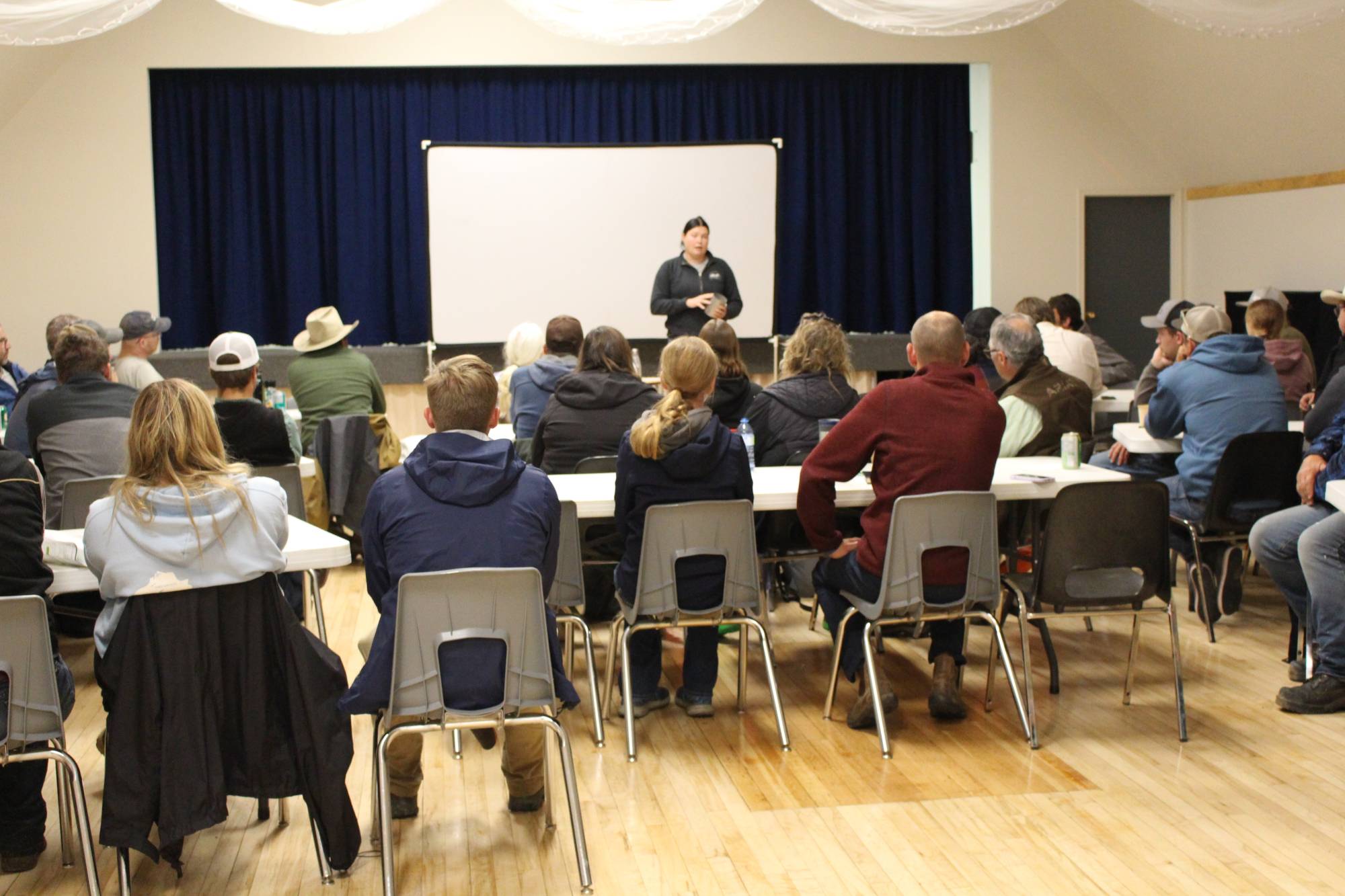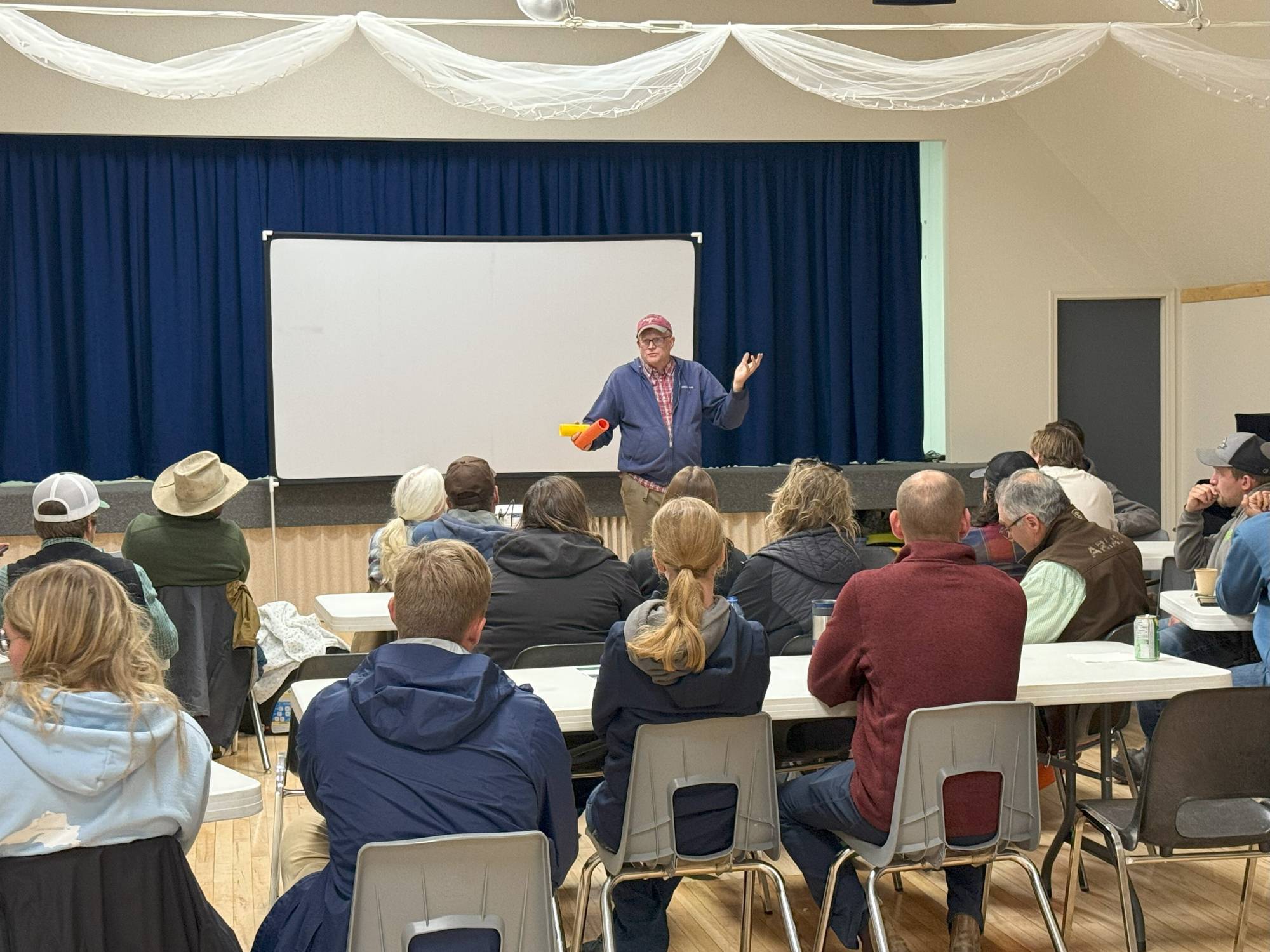This year’s field day at Mattheis took place on July 22nd. The day started off with Lisa Ratz, Research Access Coordinator from University of Alberta, welcoming the nearly 60 people in attendance. Marcel led the group through discussions on virtual fencing showing how to set up the boundaries and what the app looks like. The attendants got a close up view of the heifers with the collars during the pasture tour. The group also ventured out onto the range to see the 1200 gallon water troughs, various pasture types and checked out the Razer Grazer on hand. Following lunch at the Gem Hall was plenty of discussion regarding the extensive buried pipeline project. Barry Irving demonstrated several types of pipeline typically used and stressed the importance of proper fittings and connectors. Other presenters included Karin Roen, a Program Agronomist with Chinook Applied Research Association (CARA). Karin demonstrated how to use Water Infiltration Kits. These handy tools allow producers to observe and measure differences of effective rainfall infiltration into soil with various crop types and management. Water infiltration speed and pattern is a direct indicator of soil health and is important when monitoring a change in grazing management. To complete the afternoon, Grant Listiwka talked about using annual polycrops in a crop and pasture rotation.